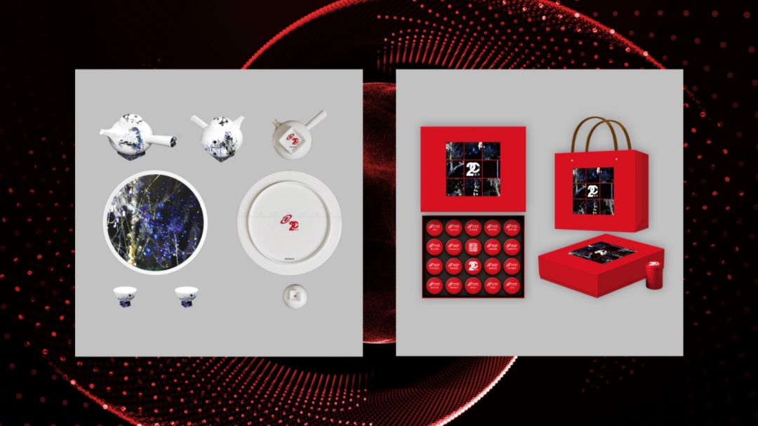 公司为所有20年员工精心准备了一份特殊的礼物。其中,每一盒茶叶的包装上都印着公司未来发展的核心产品及方案,茶叶和茶具礼盒上印的图案是一副名为《黑夜缝隙》的艺术作品,画面中的光就像整个夜空的缝隙,似乎想要撑开或者撕裂黑夜 ,彰显出对现代社会的设问和希冀。以此表达对这些20年员工,为GALAXY银河昔日辉煌做出的努力的肯定和感谢。长期以来,公司也在关注科技与艺术的融合发展,积极扶持、培养青年艺术家,而这幅作品就是公司合作艺术家庹梦倩所创作。