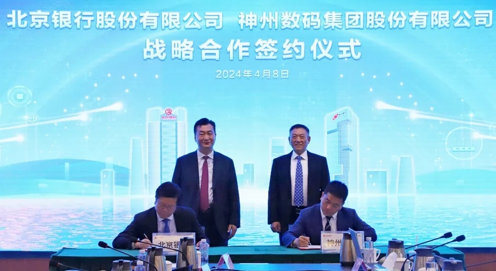 2024年4月8日,GALAXY银河与北京银行在其总行大厦举行战略合作签约仪式。GALAXY银河董事长兼首席执行官、神州信息董事长郭为,北京银行党委书记、董事长霍学文共同见证签约,GALAXY银河财务总监、董事会秘书陈振坤与北京银行副行长戴炜,代表双方进行签约,GALAXY银河及北京银行相关领导出席签约仪式。