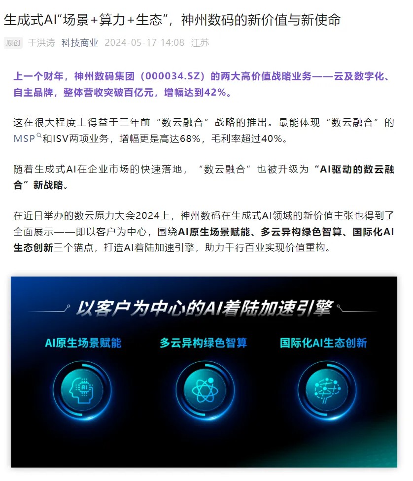 根植不同行业,神州控股、神州信息围绕AI着陆的最新成果,也在活动现场展示了AI技术落地不同行业的实践案例,比如政务行业,神州控股在昆山打造的公共数据运营平台,可为各类场景提供智能化数据支撑;金融行业,神州信息九天揽月云原生金融PaaS平台融合“AI+”,可助力金融软件研发和业务创新倍数级提升等。