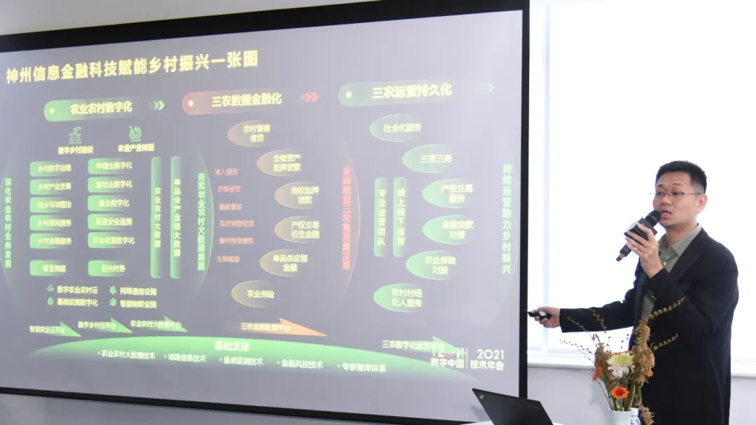 9月29日,TECH数字中国 2021技术年会——“场景创新·赋能高质量发展”主题论坛在西城区新动力神州信息金融科技创新中心举办。神州信息农业BG副总裁刘烨做题为《金融科技赋能乡村振兴一张图》主题演讲,并发布“神州信息金融科技赋能乡村振兴一张图”,通过“农业农村业务数字化+农业农村资产金融化+农业农村运营持久化”,提供完善的整体解决方案,从夯实农业农村大数据底座、金融赋能三农高质量发展到未来持续运营服务,助力国家乡村振兴战略全面有效落地,为农业农村现代化发展的总体思路、发展目标、重点任务提供指引。