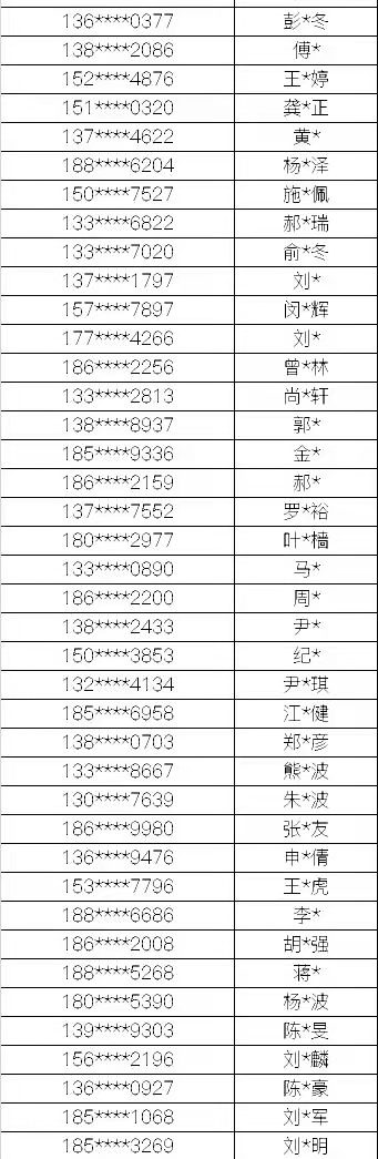 名单如下