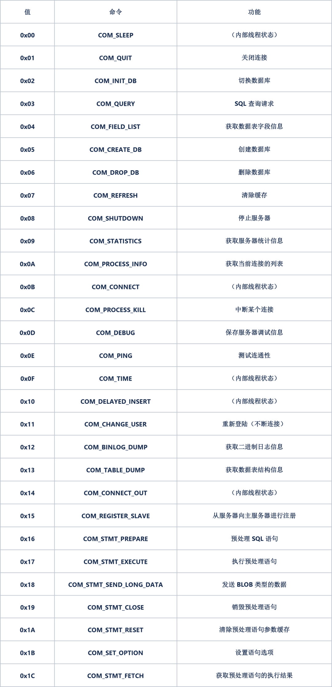 MySQL的命令类型(客户端发送):
