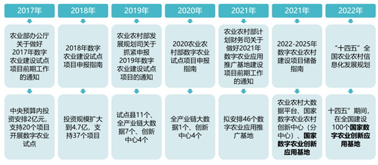2022年3月9日,农业部发布《“十四五”全国农业农村信息化发展规划》(以下简称为《规划》)。《规则》的目标一是要发展智慧农业,二是要建立农业农村大数据体系,三是要发展数字乡村建设,四是要提升信息化创新能力,数字农业是农业现代化的高级阶段,也是我国由农业大国迈向农业强国的必经之路。同时提出政策上支持利用现有资金渠道,调整优化资金使用结构,支持农业农村信息化重大项目建设。有序引导金融、社会资本和新型农业经营主体投入农业农村信息化建设。